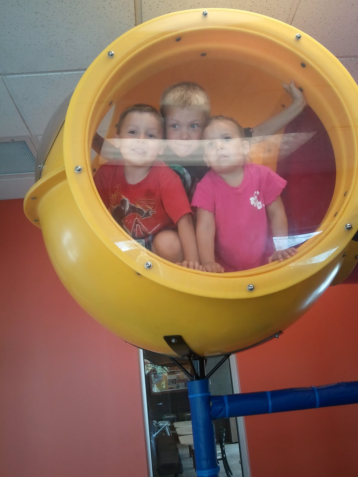 One last outing with us before school starts. This was a first to see all 3 of the kidlets in the upper bubble. Aiden takes good care of his little sister - watching out for her.